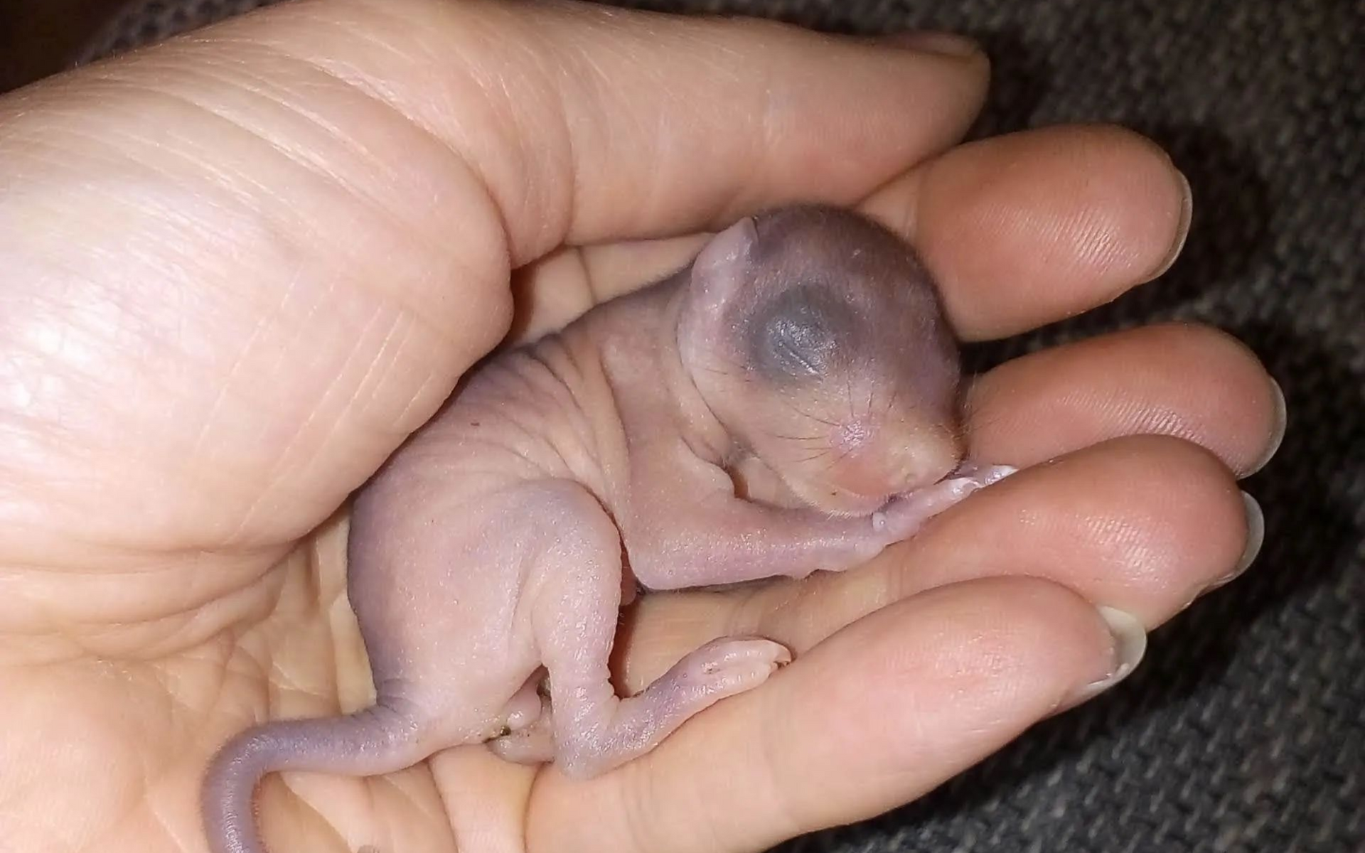Sie sind nackt und haben die Augen geschlossen und sehen aus wie kleine Mäuse. Bitte achtet auf heruntergefallene Kobel (Eichhörnchen-Nest), die durch Sturm oder Abholzung am Boden liegen können.