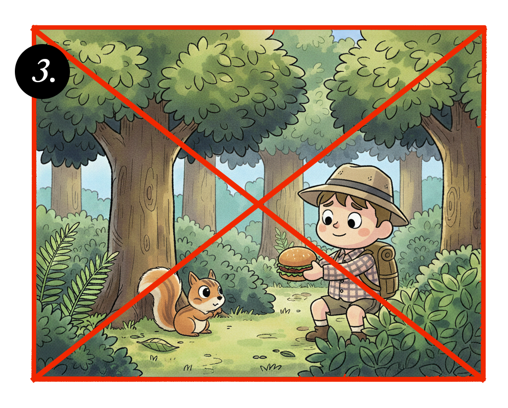 Geben Sie dem Tier kein Futter oder Wasser, da dies oft mehr schadet als nützt und die jeweilige Art falsch ernährt wird!